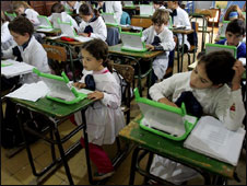 Hello and welcome to BBC Xtra English. Pupils from 270'000 families in the UK will be given free laptops by the British government. The scheme will cost £300 million and will help students from poor backgrounds have access to computer technology. Children most in need, in care and from poor homes will be able to apply for a grant for a free laptop and broadband internet connection. The Children's Secretary, Ed Balls said that this scheme will help bridge the achievement gap between rich and poor pupils. He told the BBC that "families who are most in need cannot be left behind in the digital revolution we're seeing in education". He also added that computers should not be a luxury for the few but are as essential to education as books, pens and paper. But the free laptop scheme was first mentioned by the government in 1999 but was stop after seven years. This scheme allows families to keep their laptops but their broadband internet connection will only be free for a year. After that year, the family can decide whether to fund the connection themselves. Why do you think that computers are an essential part of education? Write to us in English! ."لاستخدام هذا الملف لابد من تشغيل برنامج النصوص "جافا"، واحدث الاصدارات من برنامج "فلاش بلاير يمكن التنشغيل باستخدام برنامج "ريال بلاير"، او "ويندوز ميديا بلاير ."لاستخدام هذا الملف لابد من تشغيل برنامج النصوص "جافا"، واحدث الاصدارات من برنامج "فلاش بلاير يمكن التنشغيل باستخدام برنامج "ريال بلاير"، او "ويندوز ميديا بلاير The computer is essential fore education because allow every body to comuncation with all success of information Mohamed, Khartoum, Sudan Computers are good becouse they help and facilitate you learning Mohamed Abdullahi Osman, Mogadisho, Somalia Computers and internet are important in our life because they are the most modern way to read and write and to be connected with other persons and get quick information just like reading books in normal life but in wider range and more efficient way Adam, Tripoli, Libya The informatique technique is the pulse heart in our life today so be in school in laboratory or in compain and at any age chilren adult or oldman i think that she will be the first language in the world may be learn in the gindergarten yes yes or befor the communication between kid and computer is better than other man until that we must to tech our sons by informatique programmes Mahjoub, Laayoune *Required Fields