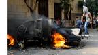 • متظاهرون أضرموا النار في سيارة تابعة للشرطة بالقرب من السفارة.