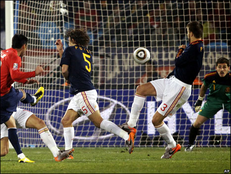 25/6: رودريغو ميلار التشيلي يسجل هدف فريقه اليتيم في المرمى الاسباني