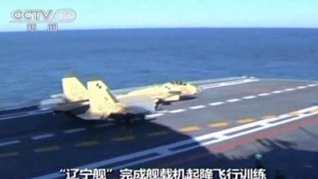 واظهرت صور التلفزيون الصيني المقاتلة جيه 15 ومؤخرتها تشبك في السلك الصلب على متن حاملة الطائرات للابطاء من سرعتها لدى الهبوط.