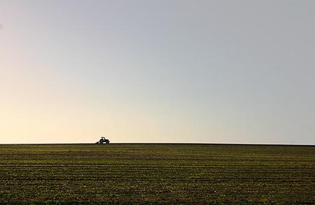 After the harvest, a farmer ploughs his field on an early Winter morning. This area was only drained in the middle ages, but humans have totally changed the landscape here.