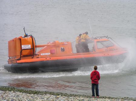 A Hovercraft trial at Morecambe Lancashire,With a fine spray as the crew were doing Trials and a young boy in the frame.