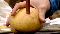 | Hazard level: medium | Careful when grinding the pipe into the potato. |