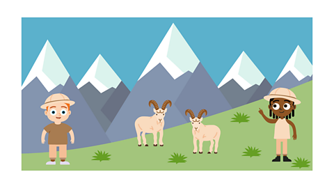 We climbed a steep hill and we saw a family of goats. The wind was very strong but we reached the top safely.