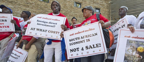 South Africa workers marching to protest Walmart's takeover of Massmart in Pretoria.