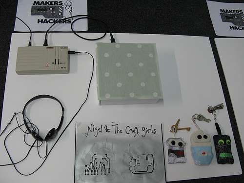 Over the next 5 hours we consolidated our ideas and threw ourselves into making by hacking, sewing, soldering, gluing and bejeweling. At the end of our marathon session our creations were voted in two categories: public and expert.