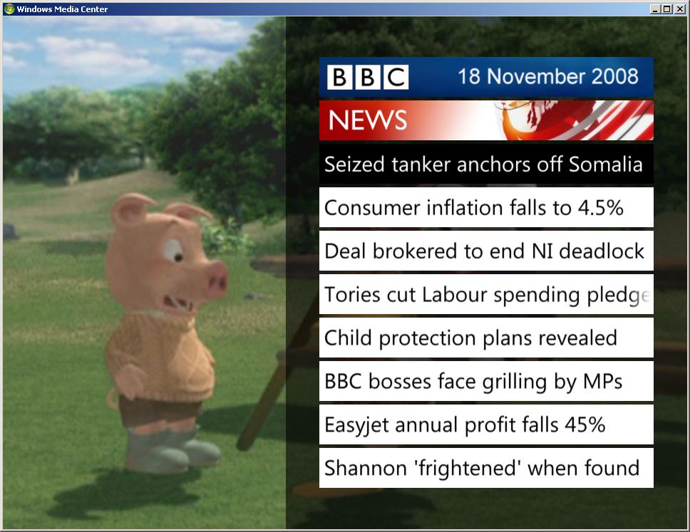 BBC News content on Windows Media Centre