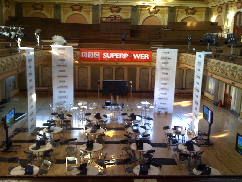 Blogworld is at Shoreditch Town Hall getting ready to start live blogging SuperPower Nation very shortly. The atmosphere is fantastic , the pictures below speak for themselves really. This unique event involves so many parts of the BBC: TV, Radio and Online and more than thirty language services, all to facilitate the live conversations that will take place today between 1300-1900 GMT.