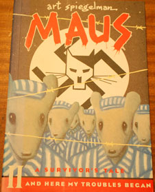 Mae’n gofnod ysgytwol o ranei stori a’’r modd y’i darlunnir a’r teitl Maus (llygoden mewn Almaeneg) yn deillio o’r ffaith mai fel llygod y darlunnir yr Iddewon yn y stori a’r Natsïaid oedd a’u bryd ar eu difa yn gathod.