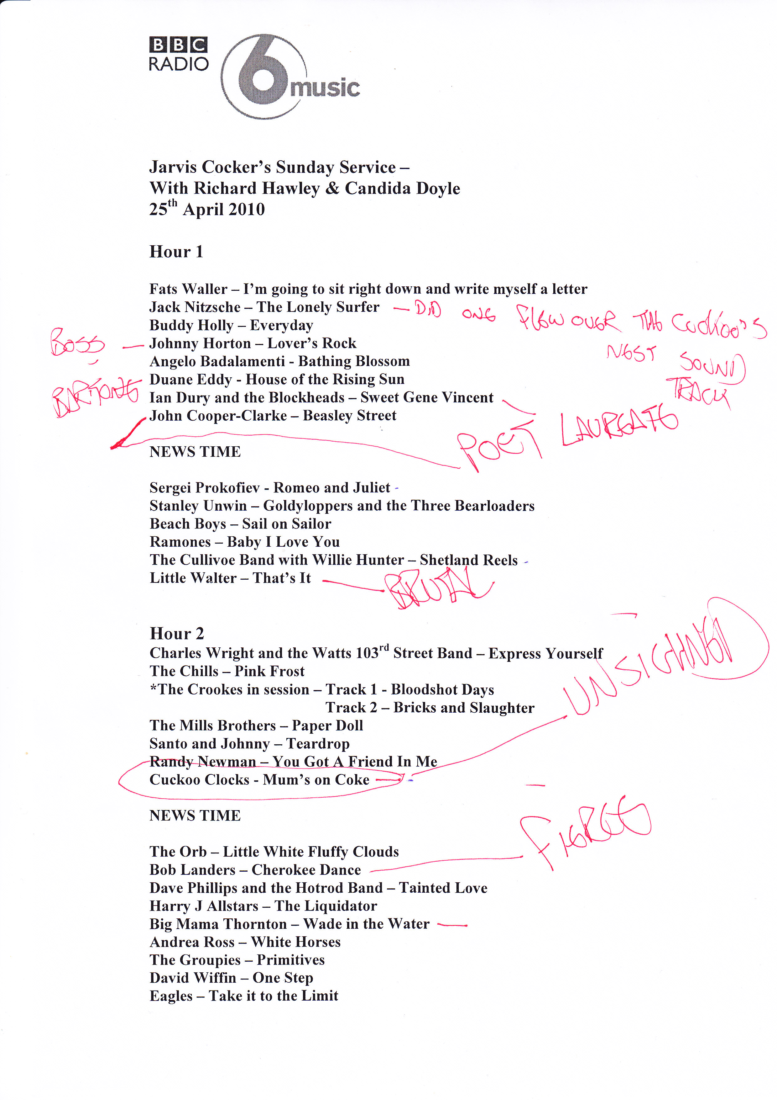 Download Jarvis' Easter tracklisting (PDF 433kb)