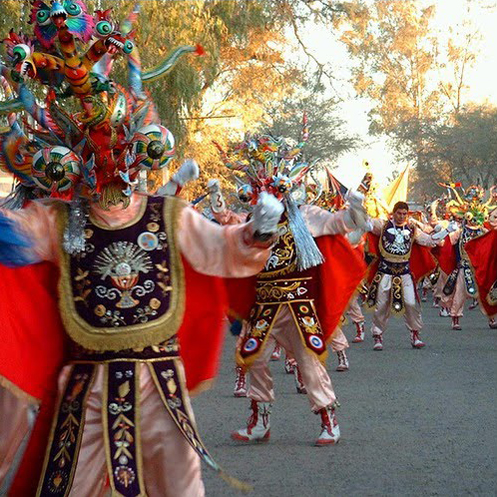 According to the legend a group of miners were trapped inside of a mine in Puno. They were slowly dying without hope of salvation. The devil had tried to take the soul, but one of them had a picture of “the Virgen de la Candelaria” in his pocket. They invoked to the virgin . When they finished praying above them opened a gap, penetrating the air and light. Since then worshiped the Virgin dancing in costumes similar to those worn by the Lord of the Underworld.