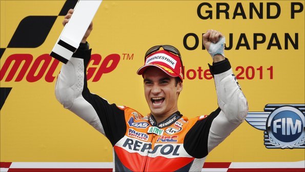 Spain's Dani Pedrosa was jubilant after winning the Japanese Grand Prix. Photo: AP