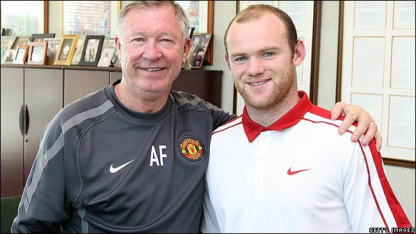 Sir Alex Ferguson and Wayne Rooney following the signing of the new contract