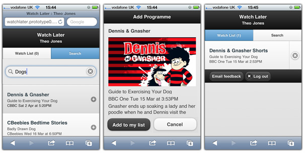 Since Tristan's original blog post, we've been busy building a lightweight prototype to help people remember and keep track of the programmes that interest you. This all feeds in to our wider interests around connecting services and devices to make more personal experiences around television and radio. This post is a project update on The Programme List prototype (nee Watch Later) prior to launching the prototype.