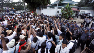 သံရုံးရှေ့ အရောက်မှာတော့ ရဲ အင်အား ၁၀၀ ကျော် လောက်က သံရုံးကို အင်အားသုံး ပိတ်ဆို့ထား ခဲ့ရပါတယ်။