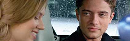 Prennaidd braidd ydi Scarlett Johansson a phob hyn a hyn y mae Topher Grace yn argyhoeddi.
