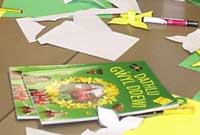 Gwneud cennin pedr Wedi'r storïo daeth yn bryd arfogi eu hunain gyda selotêp, gliw a phob math o drugareddau gwaith llaw ar gyfer gwneud eu cennin pedr eu hunain trwy ddilyn cyfarwyddiadau lliwgar y gyfrol.