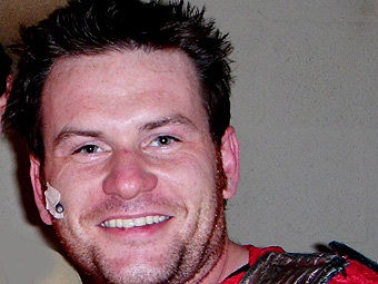 Arwel Wyn Roberts ydi Macsen - y Rhufeiniwr sy'n mentro i Gymru gyda'i was, Pleb, i gyrchu Elen.