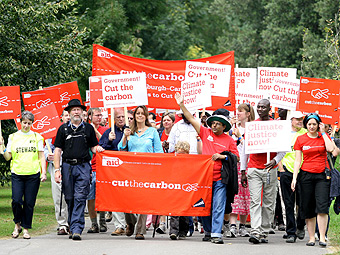 John Rowlands a Taith Thorrwn y Carbon yn cyrraedd Caerdydd 8 Medi 2007 gyda rali ar Gaeau Cooper