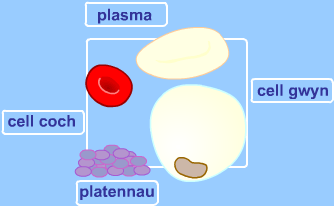 (iv) plasma - hylif sy'n cynnwys dŵr yn bennaf. Mae'n dosbarthu mwynau, gwastraff, bwydydd a hormonau trwy'r corff, a chludo gwastraff o gelloedd ar ôl y broses o resbiradu Cofiwch