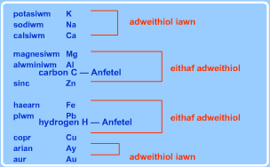 Er mwyn deall Metelau ac Anfetelau, mae angen cofio: Mae'r rhan fwyaf o fetelau yn:-