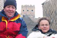 Ymwelwyd hefyd â Wal Fawr Tsiena. "Os 'ych chi'n mo'yn gweld symbol o fawredd China, dyma hi - y wal," meddai Nerys, yn cymryd hoe o'i cherdded gyda Hywel.