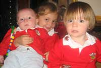 Nid oedd fawr o glem da'r bois am Ddydd Gŵyl Dewi eleni gan eu bod mor fach ond o leiaf cawsom gyfle i wisgo eu crysau rygbi Cymreig a chwrdd â ffrindiau bach eraill sy'n siarad Cymraeg.