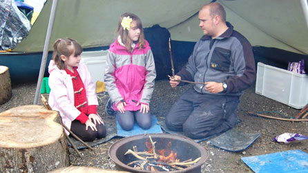 Yn boblogaidd iawn ymhlith y plant sy'n ymweld â'r gwersyll mae twymo marshmalows mewn tân agored.