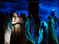 ऑपेरा के स्टेज पर राजसी ठाठ-बाठ दिखाते हाथी, कवच तलवारें, घाघरा चोली पहने रूपसी गोरियाँ, फ़्रांसीसी दर्शकों को ये सब ख़ूब भाया है. पद्मावती का किरदार फ़्रांसीसी कलाकार सिल्वी ब्रूने ने निभाया है जबकि रत्न सिंह बने हैं फ़िनोर. ऑपेरा में किरदारों को भारतीय लिबास देने का काम किया है मशहूर भारतीय डिज़ाइनर राजेश प्रताप सिंह ने और कोरियोग्राफ़ी की है तनुश्री शंकर ने जो उदय शंकर की बहू हैं. सेट डिज़ाइनिंग का ज़िम्मा उमंग कुमार सिंह का है जिन्होंने साँवरिया में भी यही काम किया था. वैसे संजय लीला भंसाली के फ़िल्म बनाने का अंदाज़ भी ऑपेरा के करीब माना जाता है. हाल की उनकी फ़िल्म साँवरिया की ही बात करें--एक सपनीली, रंगीली, ख्वाबों की अजब-ग़ज़ब दुनिया थी-जो फ़िल्म कम और ऑपेरा ज़्यादा लगी थी. अब विदेशी धरती पर जाकर संजय लीला भंसाली ने हक़ीकत में ऑपेरा बनाया है और उनकी ये कृति फ़्रांसीसी दर्शकों का दिल भी जीत रही है ठीक वैसे ही जैसे छह साल पहले उनकी फ़िल्म देवदास ने फ़्रांसीसी लोगों का दिल जीता था. | इससे जुड़ी ख़बरें 'काश राजकपूर के साथ काम कर पाता'02 नवंबर, 2007 | मनोरंजन एक्सप्रेस महान ऑपेरा गायक पावारोत्ती का निधन06 सितंबर, 2007 | मनोरंजन एक्सप्रेस साँवरिया के साज़ से गानों की बरसात08 अप्रैल, 2007 | मनोरंजन एक्सप्रेस टाइम की टॉप टेन फ़िल्मों में 'ब्लैक'30 दिसंबर, 2005 | मनोरंजन एक्सप्रेस बॉम्बे ड्रीम्ज़ अब मुंबई की तरफ़20 जनवरी, 2005 | मनोरंजन एक्सप्रेस ब्रिटेन के स्टेज पर भारतीय संगीत03 अप्रैल, 2005 | मनोरंजन एक्सप्रेस उत्कृष्टता की तलाश में संजय भंसाली06 अगस्त, 2004 | मनोरंजन एक्सप्रेस | |||||||||||||||||||||||||||||||||||||||||||||||||||||||||||||||||||||||||||||||||||||||||||||