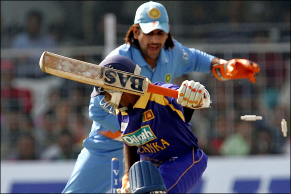 मुरली कार्तिक की गेंद पर धोनी ने माहिला जयवर्धने को 14 रन के स्कोर पर स्टंप आउट कर दिया.