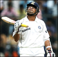 दोनों स्कोर को 77 रन तक ले गए. गौतम गंभीर मिचेल जॉनसन की एक धीमी गेंद पर चकमा खा गए और बोल्ड हो गए. उन्होंने 29 रन बनाए. सचिन तेंदुलकर काफ़ी संभल कर खेल रहे थे और लग रहा था कि वे लारा का रिकॉर्ड तोड़ देंगे. लेकिन ऐसा हो न सका. सचिन 49 रन बनाकर व्हाइट की गेंद पर पवेलियन लौट गए. लेकिन इससे पहले उन्होंने वीवीएस लक्ष्मण के साथ मिलकर भारतीय पारी को मज़बूती दी. इसके बाद सौरभ गांगुली मैदान पर आए. लेकिन ख़राब रोशनी के कारण बार-बार मैच रोकना पड़ा. मैच जब ख़त्म हुआ तो भारत का स्कोर था चार विकेट के नुक़सान पर 177 रन. वीवीएस लक्ष्मण 42 और गांगुली 26 रन बनाकर नाबाद रहे. |