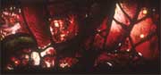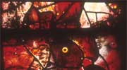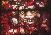 The Day of Judgement at St Mary's, Fairford, Gloucestershire| Origins of the window | The Red Devil | Royal connections | The technique | | Origins of the window The sequence of windows in St Mary's begins with prophets foretelling the coming of Christ and features Eve, Moses and the Burning Bush. The story continues with Man's redemption: the Nativity, the Rest on the Flight into Egypt, the Assumption, the Crucifixion, the Deposition and the Harrowing of Hell, the Transfiguration, the Ascension and the Pentecost. High up on the north side of the central aisle we find (astonishingly) the enemies of the Church such as Herod and Nero. The Red Devil can be found on the West end - thought to be the people's, rather than the priest's, part of the church - and was a warning intended to inspire good behaviour