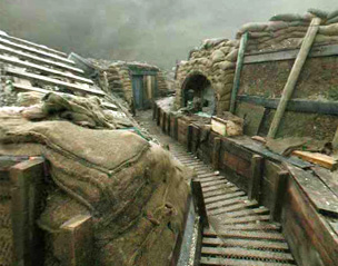 This panorama shows a front line trench, recreated for the series 'The Trench'.