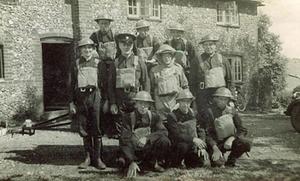 The photos were taken outside The Three Pigeons pub. Now a private house. I think that this was the fire service pub, while the Home Guard used The Crown. The personnel are Front row kneeling from left: Steve Norcott (factory worker), Bill Barrett (Engineer), Mr. Dorset (farmworker).
