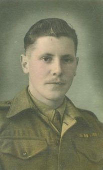 At the age of 18, after 6 months intensive training I was part of a large contingent of men deposited, via troopship and landing craft, on to the beach at Arromanches in France. We walked to Bayeux to a tented transit camp, for one night and on the following day we all left for front line duty. Before being posted to our relevant regiments, a short church service was held and several of us took Holy Communion kneeling on a tarpaulin in the heather. I then joined the 1st Battalion of the Hampshire Regiment of the 50th Division which had landed on Sword Beach on D Day.
