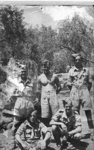 This was a new experience for me, we were transporting supplies with jeep & trailer at night sometimes as far as Cairo a village in the mountains several miles away along mountain tracks. We couldn't do anything in daylight as we would have been seen. With the windscreen folded flat on the bonnet we crawled along these narrow tracks in the dark. Once I had an infantry soldier with me and as we came to a fork in the track I wasn't sure of the way.He said I think it's right but we had driven between the 2 tracks, one went uphill and the other went downhill. The jeep went over to the left and as I stopped it was balancing on the left front wheel and the right back wheel. I said to my mate I will get out first and then you get out. We carried out this operation and then it went over on its back. In a while some soldiers came along and we put it back on its wheels. No damage just the steering wheel slightly bent. I kept that jeep all the time. On another occasion there was a dead mule blocking the track so I tied a rope round its back legs and the other end to the jeep. When I backed up the legs came off. It was rotten and the stench was terrible, in fact the whole area had a horrible smell. I drove over what was left of the mule. If we couldn't get back to our base before daylight we stayed until it got dark. Sometimes we had to do a daylight run. This was carried out under cover of smoke which was laid down on the stretch of Highway 6 in view of the monastery. We called this The Mad Mile. As we came out of the smoke we had to slow down to turn right off highway 6 and onto a side road, from then on we couldn't be seen from the monastery.