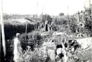 Neighbours watching the German bombers overhead from the gardens of Alexander Road, Luton, (near Chatham,) Kent - c. 1940.