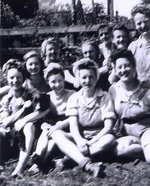 We Land Girls became stronger and healthier as time went by, but it played havoc with the hands, but who cares. We would not dream of being soft and wearing gloves to work. The photo of the group of Land Girls during my time at Chain Lane Hostel was taken outside the Duty Hut. The chap at the back used to negotiate with the farmers to see how many Land Girls he required and Molly, next to him, sorted out suitable people for the jobs. He also drove the jeep, which took the ‘gangers’ to various farms, collecting them at the end of the day. Our destinations included a fifty-mile radius around Harrogate.
