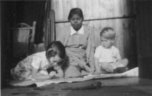 Rosemary, Martha, Brian in Granddad's "Summer House" [Bristol 1939]