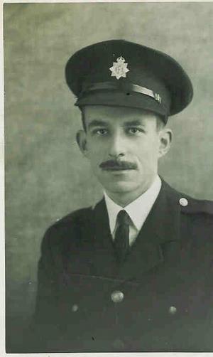 Harry Chambers in his firemans uniform complete with hat - he served in London during the war