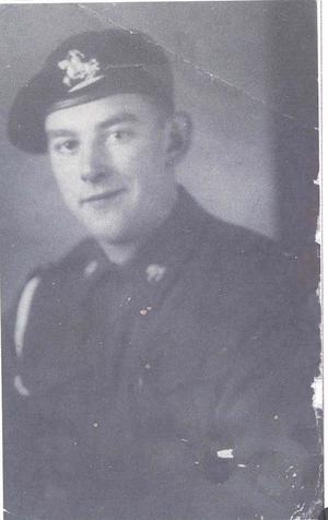 When I was called up into the army the first town that I went to was OSSET in West Yorkshire and it was an old woollen mill which had been closed for some time where we slept. On my first day in the Army, I was expecting to be shouted at by the sergeants and everybody else, but it was just the opposite, they were all friendly and considerate. I was amongst the first of a new system where we were graded into groups according to ability. We were in classrooms for the first two or three weeks, putting square pegs in square holes, and doing simple arithmetic calculations. We had to put together a bicycle pump, and various items like that, and it surprised me the number of them who couldn't do these, to me, simple things. Don't think I am being a big-head, but I think it was because I could do these tests easily, that I was sent to a Tank Training Regiment. One thing the Army were very keen on and was Physical Training. We used to go on cross-country runs, and were expected to go for boxing and any sort of exercise. When I first joined up, my weight was 10 stone 10 pounds, (approximately 68 kilos) and I was boxing other soldiers of the same weight, and I was doing quite well. The trouble came when we had the finals. I didn't realise that all the fresh air and exercise had built up my weight and when we were weighed for the finals after about 6 weeks, my weight had gone up to 12 stone 7 pounds( approximately 79 kilos). We were all matched up with an opponent of the correct weight, and needless to say, I was knocked about all over the ring. I realised that boxing wasn't one of my good points, and so that was one thing that I had to pack up. Shortly after this we were all sent to different Regular Army units, and luckily for me, I was sent with my mate, a Scot, to a Scottish Regiment.