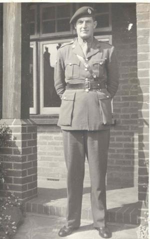 Major Desmond Bonham-Carter outside his headquarters in Hove