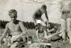 The candid camera does it again, myself and Domo, one of the lads caught in the act of donning his swimming drawers.