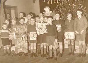 Christmas Party, Berkshire 1939. The presents were "on loan" for the picture which was taken for the East Ham Echo newspaper. Donald is fourth from the right and Henry second from left in the front row.