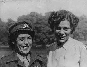 Photograph of Olive Smith and Bunny Carter taken in Weybourne, Norfolk at the end of the War