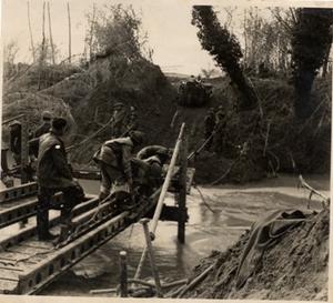 Robert Richard James Corfield - Italy, Bridge Building. Possibly 1943/44.