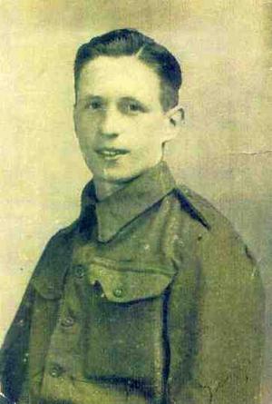 Our Sergeant then passed a message down the line that all nine of us had to get a grenade ready, and when he shouted, "Now!" to throw them at once. According to the crying, some of them were on target. We were then told to follow each other, keeping close to the ground. I saw them crawling over the lad who had been killed and decided to stride over him. I got up and was pushed to the ground by a Corporal just as an enemy automatic weapon fired just over us. I looked up smiling and said. "Thanks," to which he replied, "It's no good laughing, when we say keep down, you keep down. You're lucky we are not climbing over you." When we got to the end of the ditch, we charged round to find that the Germans had gone, leaving a few rifles behind, which we smashed against a tree.