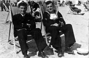 Stoker Bruce and Chief Petty Officer enduring the hardships of war on Falmouth beach!