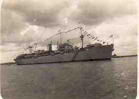 HMS Portland Bill, Singapore Xmas 1945 with the Japanese cruiser “Myoko” beyond