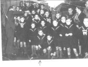 Here is a photograph of me and the other boys in the Orphanage, wearing our sailor uniforms. This was taken in 1940. I am on one knee and the taller of the two at the front.